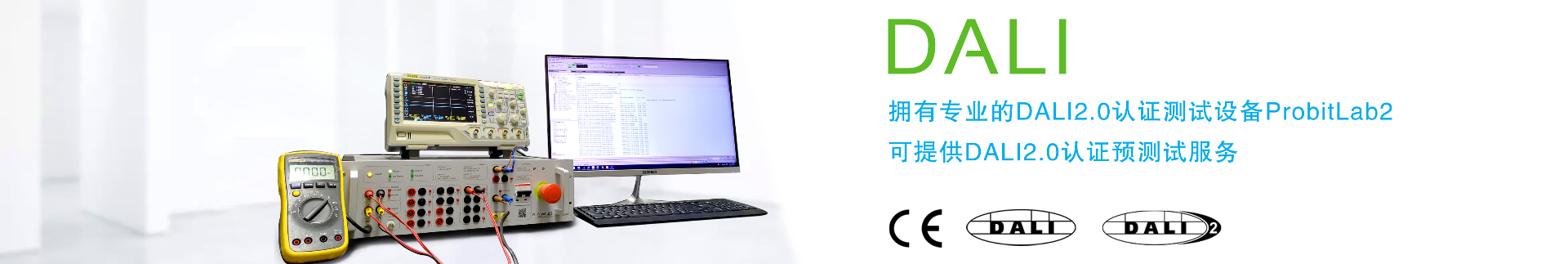 我司擁有專用的DALI實驗室,從DALI協會購買了用于DALI認證測試的ProbitLab2設備,可以幫客戶做DALI認證測試。我公司的DALI模塊已通過DALI1和DALI2.0(2018版)認證測試,可以提供DALI2認證證書。